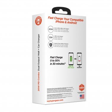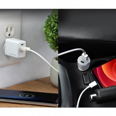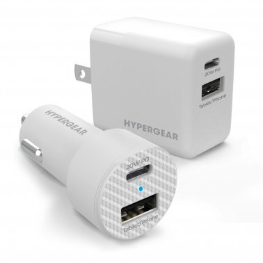 HyperGear Combo Bundle – Wall Charger 34W 2 Port (20W Power Delivery USB-C & 12W USB-A) & Car Charger 2 Port 20W (20W USB-C & 12W USB-A) – White