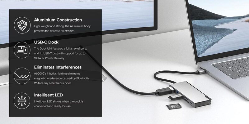 The alloy-encased UNI – which features USB 3.2 capability – has a mix of USB-A & USB-C ports for essential peripherals [including external keyboard, mouse, printer, and phone]. It includes SD and microSD card slots for speedy multimedia file transfers. Its HDMI port supports a stunning Ultra HD 4K@60Hz external display, and its 100W Power Delivery Passthrough technology means you can charge up your devices in a fraction of the time.