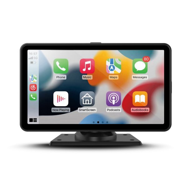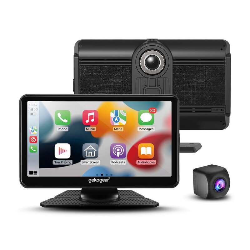The GekoGear Orbit C110 features a 7-inch touchscreen display with wireless Apple CarPlay and Android Auto, it also includes a front and rear dash cam.