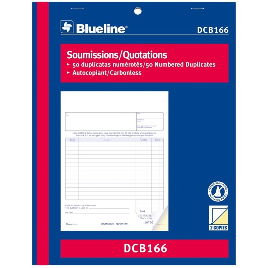 50 Sheet(s) – 2 Part Carbonless Copy – 11″ x 8.50″ Form Size – Letter – Blue Cover