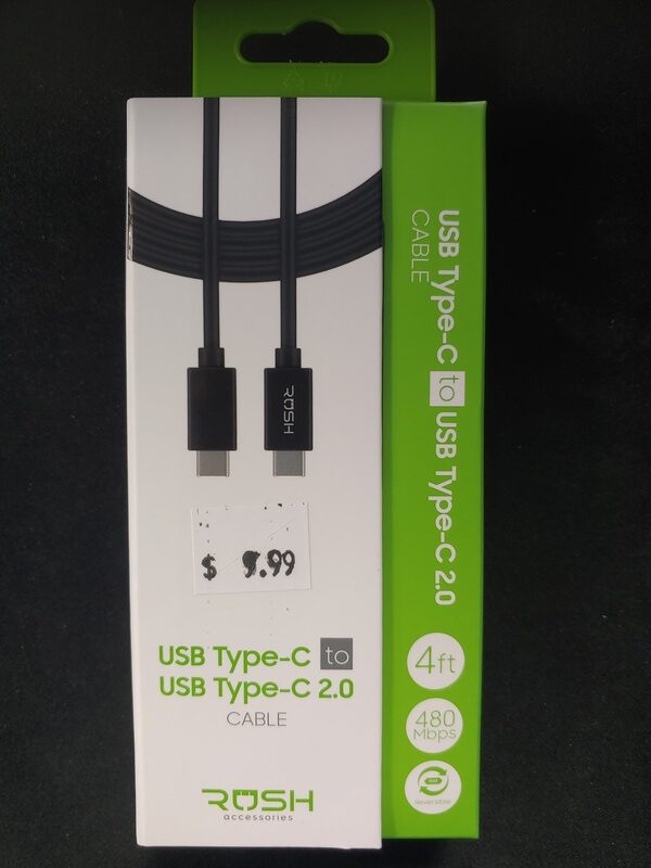 RUSH – USB-C to USB-C 2.0 Cable – 4FT – Black