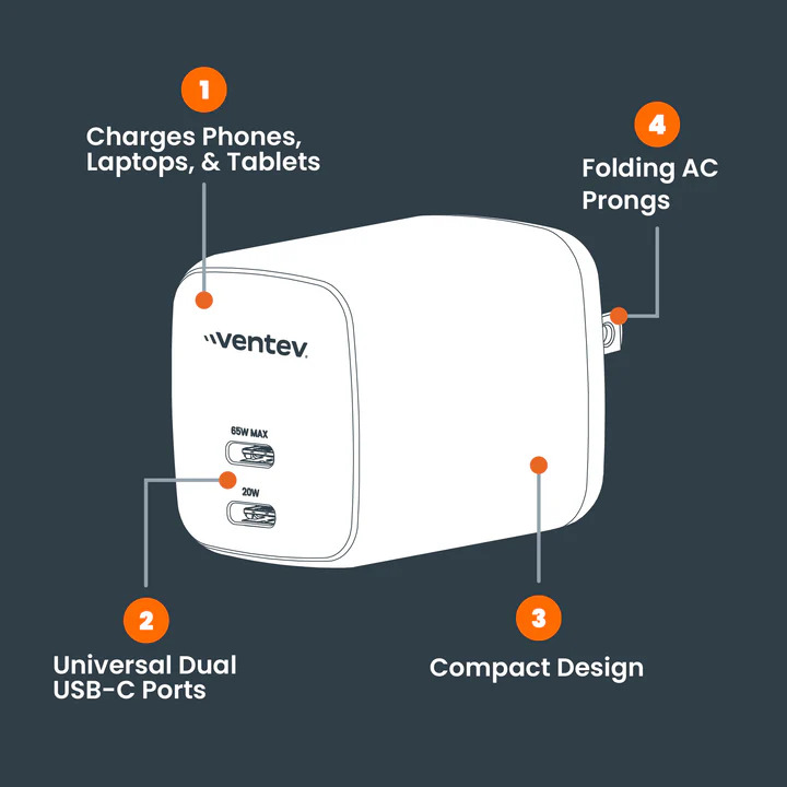 Ventev Wall charger 2port 65 w